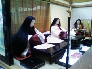 個人的には明石の上が見たかったのだが、その時々によって再現する場面が違うらしく、彼女はおりませんでした。女楽と衣配りの時は、六条院の女達勢ぞろいという感じで大変華やかだったらしい。来ている衣服でその女性の性格まで現しているそうで。一度行ってみたかったところなので本当に楽しかった。